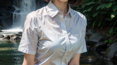 都会を離れて森に来ました。水辺で一休みしました。「誰もいないから脱いじゃえ」「きもちいいー」